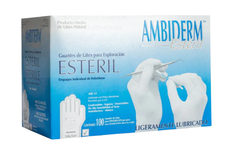 Guante para exploración estéril bajo en polvo 100 pz AMBIDERM